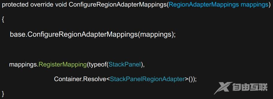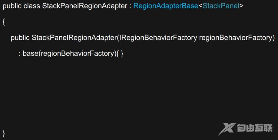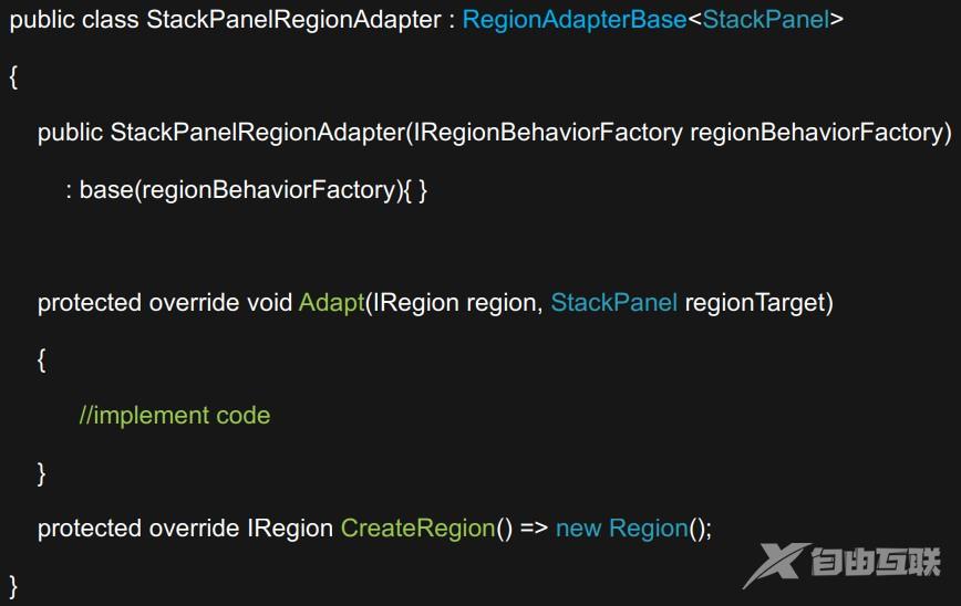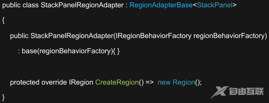 首先, 我们在这里创建一个类, 然后继承于RegionAdapterBase, 下面我们创建了一个基于StackPanel的自定义适配器。