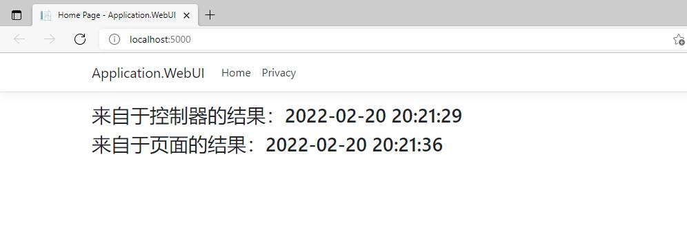 按F5可以看到页面值的变化效果,"来自于控制器的结果"的值会一直不变,“来自于页面的结果”随着页面刷新,值会一直变化