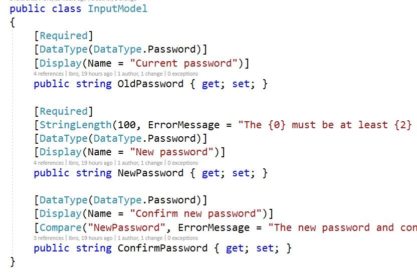 让我们回到之前ChangePassword的示例。这是ChangePassword.cshtml.cs文件的一部分代码: