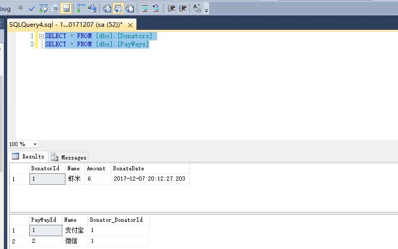 要在数据库中配置一对多关系,我们可以依赖EF约定,还可以使用数据注解或Fluent API来显式创建关系。接下来使用捐赠者Donator和支付方法PayWay这两个类来举例子,这里的一对多关系是:一个人可以通过多种支付方式赞助我。