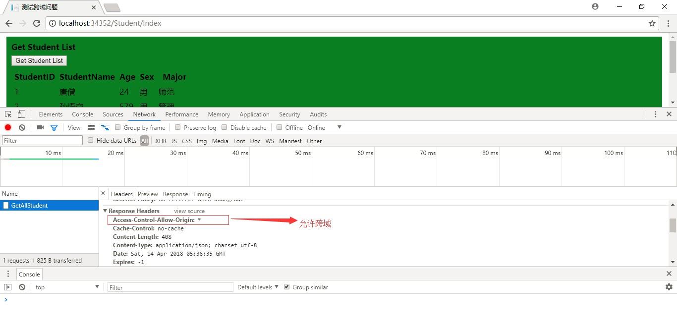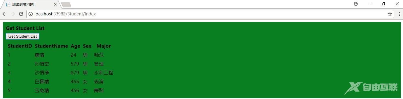 这里使用“*”号表示对所有的域名都可以跨域。再次从MVC里面访问WebApi,查看测试结果: