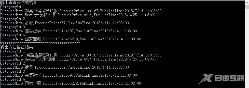 Console.WriteLine("输出查询表达式结果");