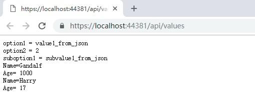 string option1 = $"option1 = {this.Configuration["Option1"]}";