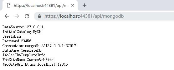 await Response.WriteAsync("Connection:" + _mongodbHostOptions.Connection + "rnDataBase;" + _mongodbHostOptions.DataBase + "rnTable:" + _mongodbHostOptions.Table);