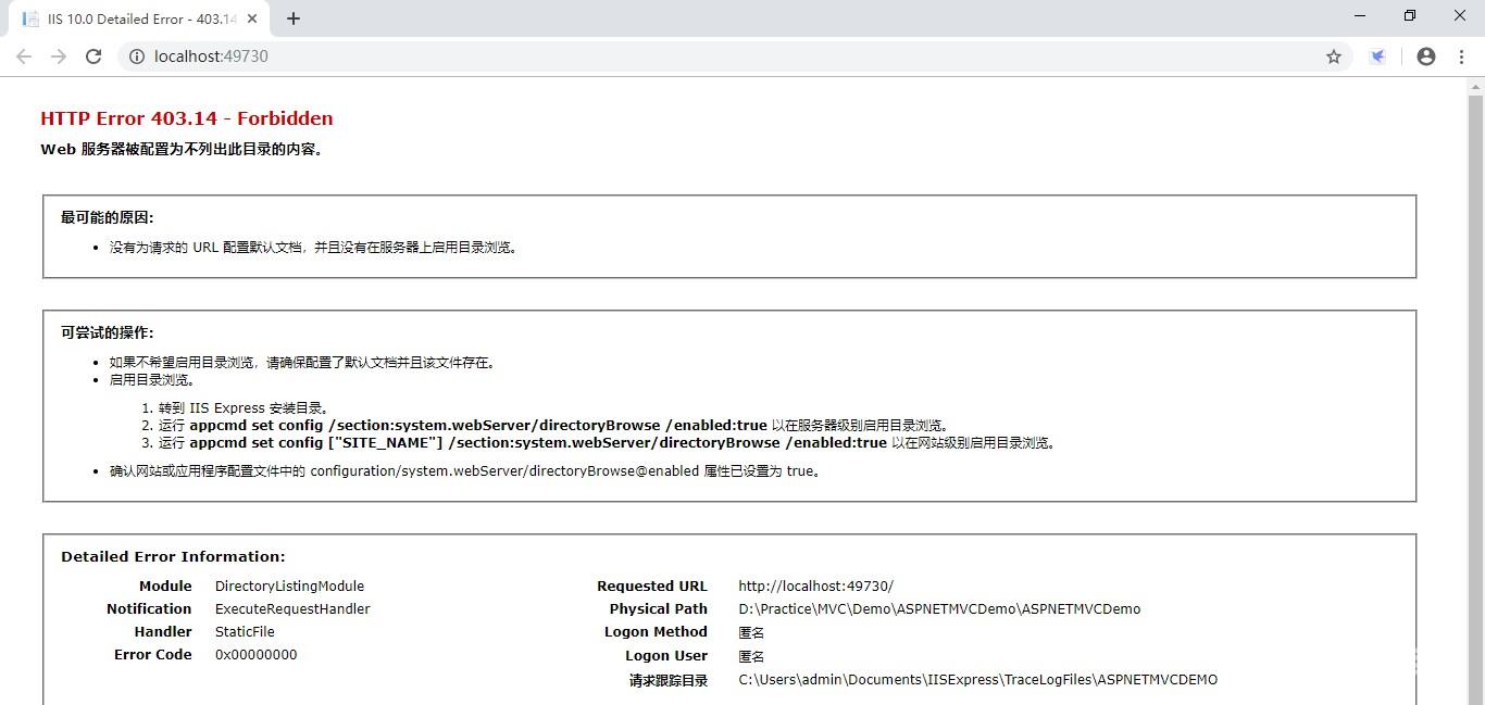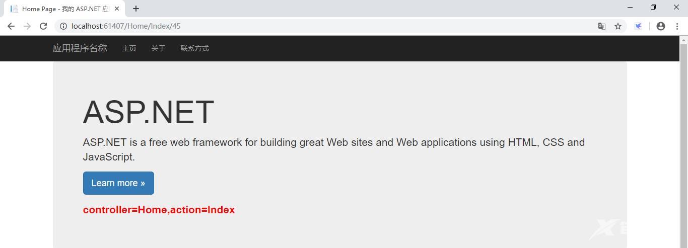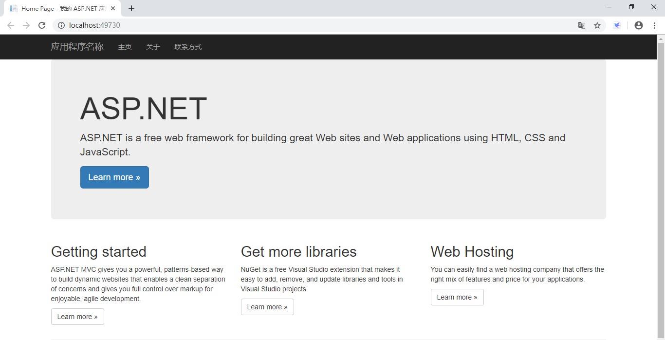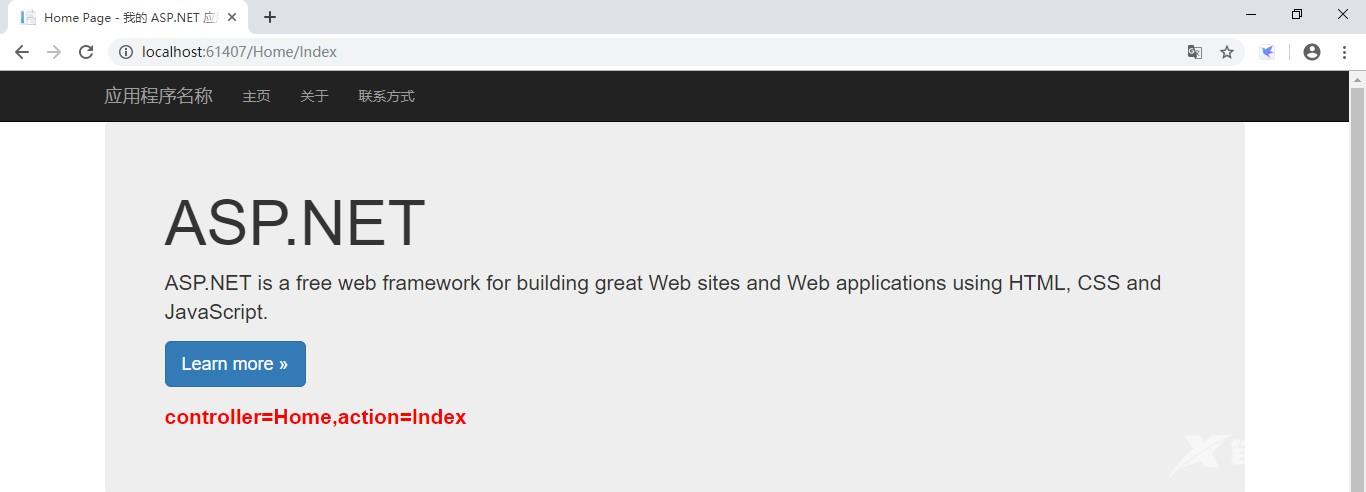 其实该地址相当于在浏览器里面输入:http://localhost:49730/Home/Index,这时因为在路由规则里面设置了默认值,如果没有控制器和action方法,则默认是Home控制器下面的Index方法。