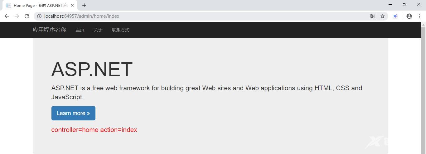 运行程序,在浏览器里面输入:http://localhost:64957/admin/home/index,运行结果如下: