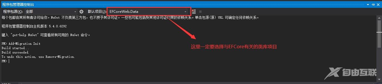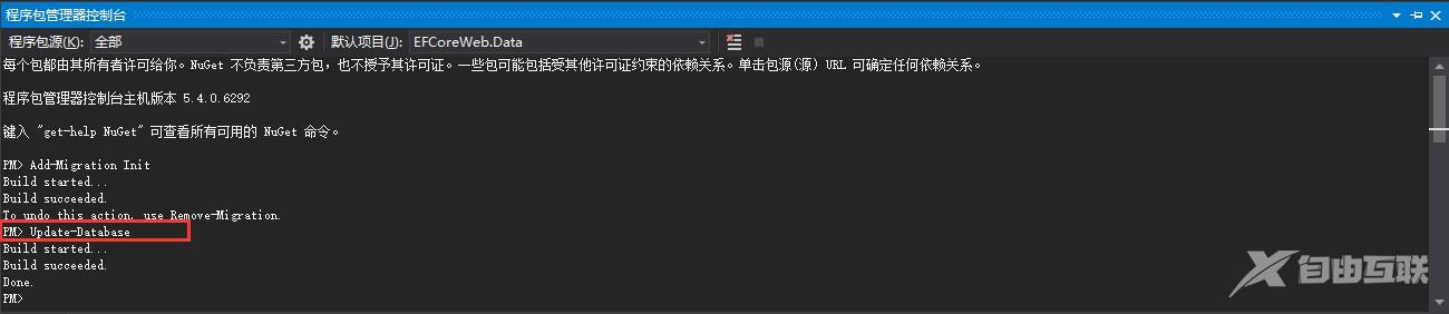 上面步骤配置完成以后,在程序包管理器控制台里面开始迁移,使用下面的命令添加迁移: