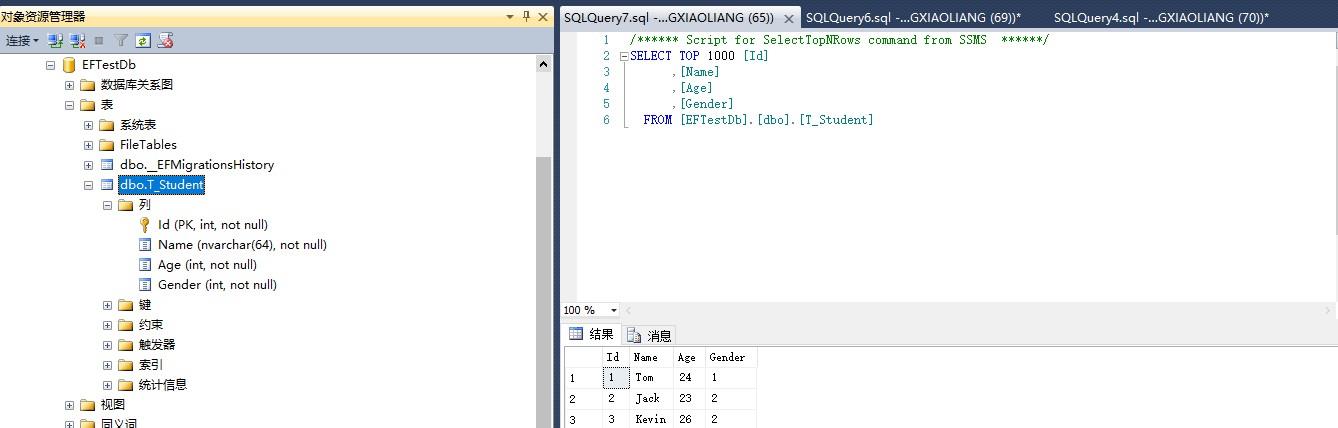 可以看到,表里面Name列的长度是根据代码里面设置的长度生成的,而且不为null,种子数据也插入进去了。