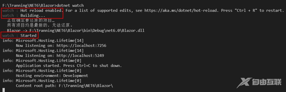 若要禁用热重载支持,请将--no-hot-reload选项传递给dotnet watch命令:
