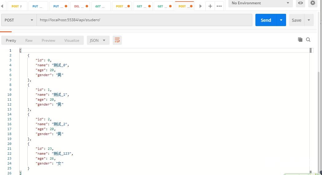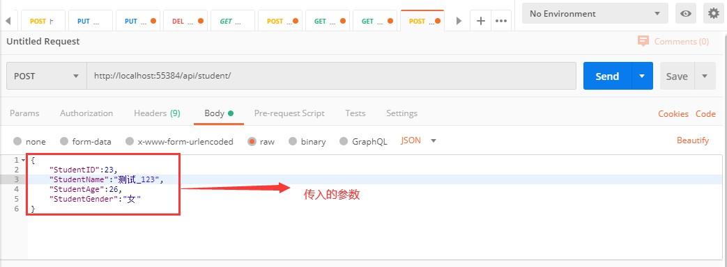 修改Student控制器,添加一个Post方法,传入的参数的StudentDTO类型: