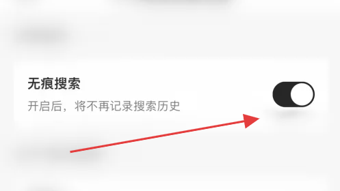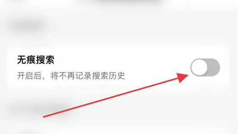 3、在设置界面找到无痕搜索选项,点击其后面的圆点进行开启。