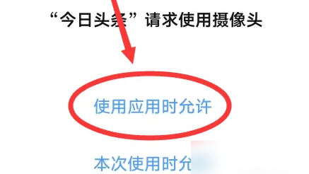 3、进入扫一扫界面后,选择使用应用时允许选项,授权应用使用相机完成扫码操作。