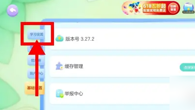 2、在家长管理页面中,找到并点击学习设置选项,进入学习参数调整界面。