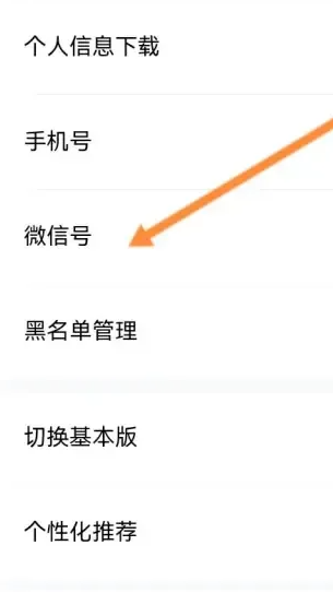 4、在帐号与安全页面中,点击微信号选项进入微信绑定相关界面。