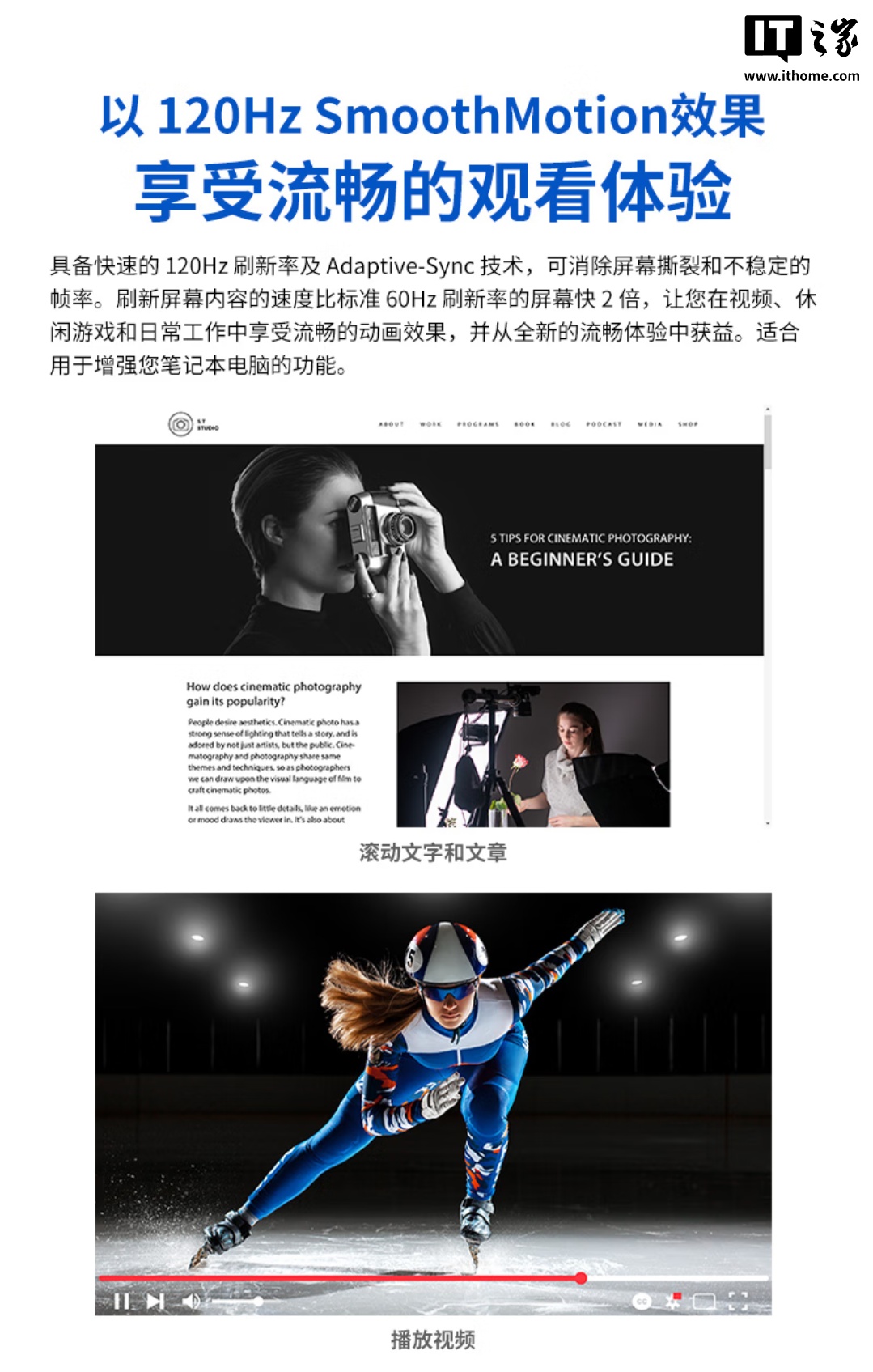 据介绍,这款显示器采用无边框设计,内置的 IPS 面板可提供 178° 观赏视角,支持 120Hz 高刷和 Adaptive-Sync 技术,可消除屏幕撕裂和不稳定现象,支持 VRR 可变刷新率,MPRT 响应时间可达 1ms。