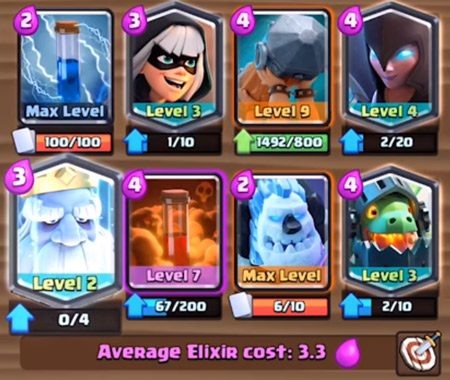 据说现在很多朋友都喜欢大皮卡的卡,那就来个皮卡和鬼的组合,矿工毒法术的消耗流,鬼的潜行推进,让人有点无奈。大皮卡配合电法术防守,更不用说有多强了。即使没有电法师,也可以用弓箭手或者小火枪手代替。绝对是一套好牌。