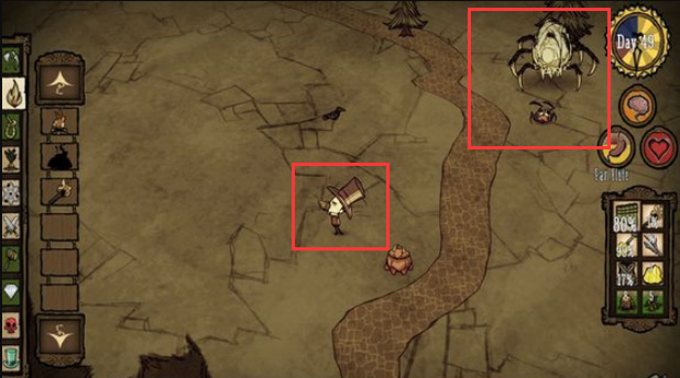 3、 如果玩家没有快速杀死蜘蛛女王,蜘蛛女王会在游戏中徘徊1.5天,然后在一个有足够空间的地方自动消失,并在同一个地方再次建造一个一级蜘蛛巢。
