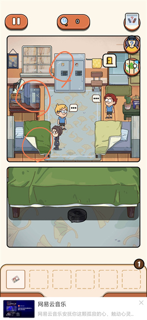 在垃圾桶里可以获得一张写有假炸弹的纸条,一份写着制作旧报纸;床上移开枕头可以获得一张被裁剪的照片;