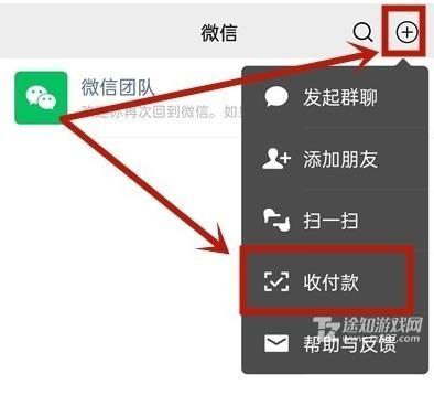 1、打开微信,点击右上角【+】,点击【收付款】。