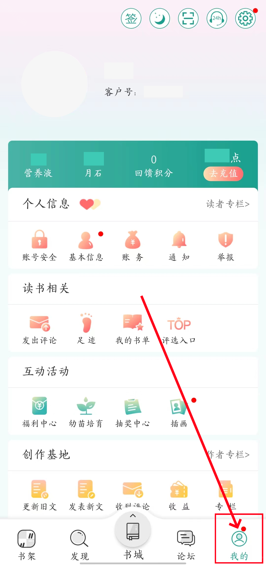 1、首先打开晋江小说阅读,点击右下角【我的】。