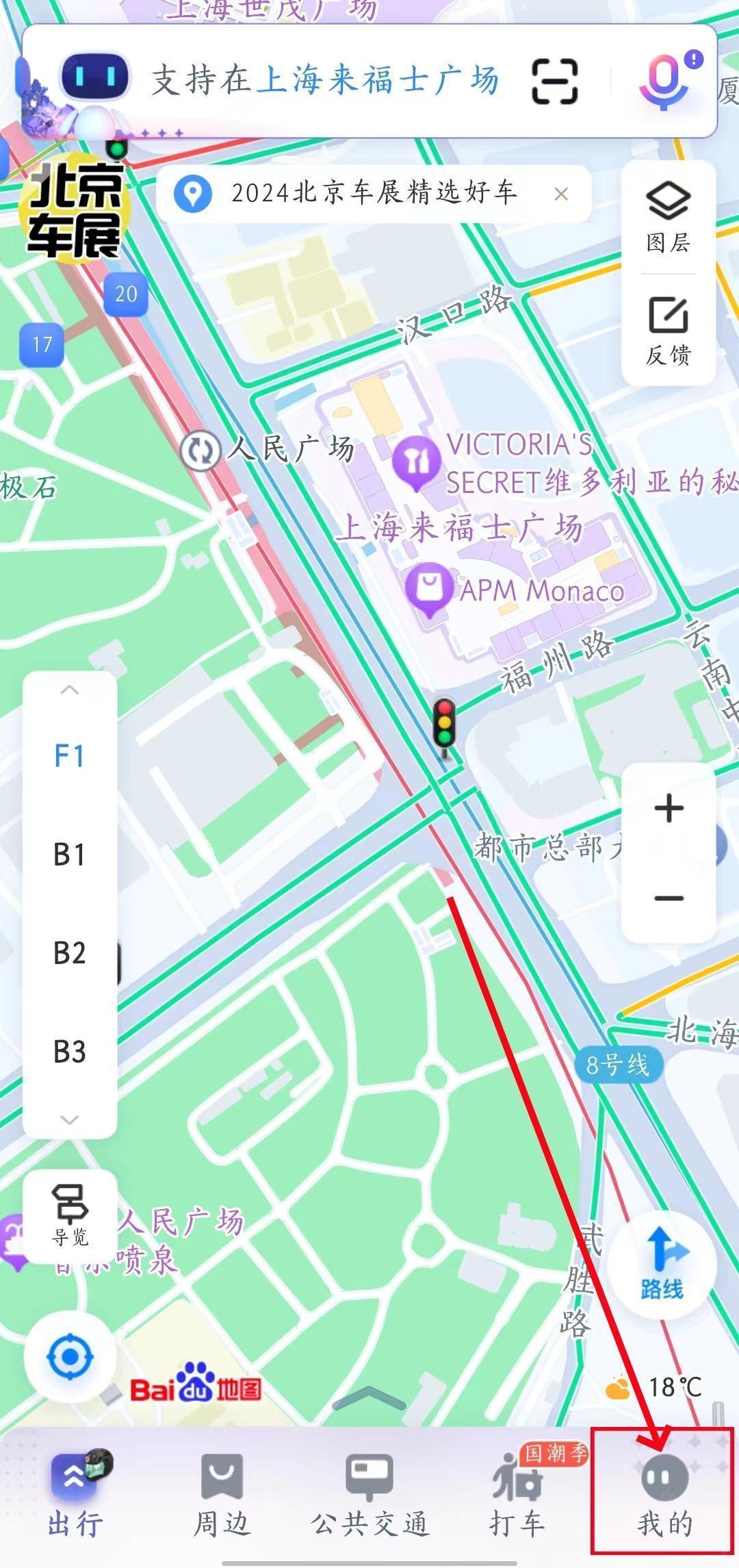 1、首先打开百度地图app,点击右下角【我的】。