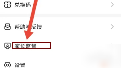 2、在个人页面中找到家长监督选项,点击进入时间管控设置界面。