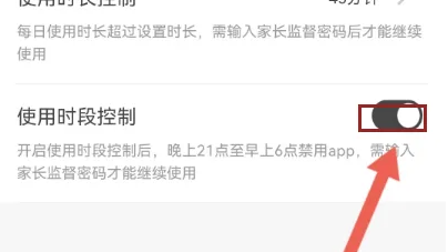 3、在设置界面找到使用时段控制选项,点击开启完成使用时段控制操作。