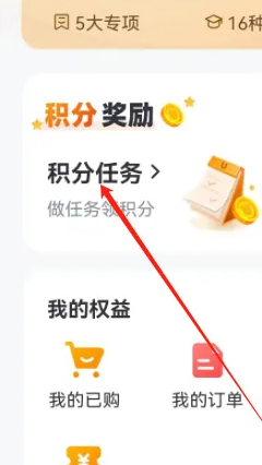 2、在个人中心页面中找到积分任务选项,点击进入积分任务界面。