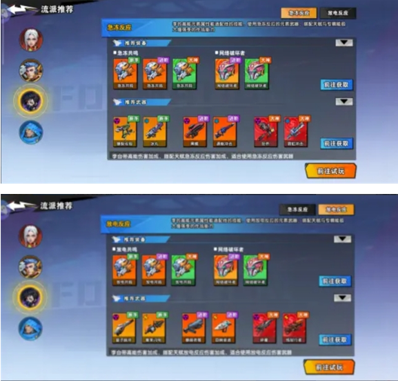 ur:黑蝎,源能冲击sp:狂热,霓虹冲击,流派武器核心ur:源能冲击sp:霓虹冲击,冰武器配合高能技能可打出急冻反应