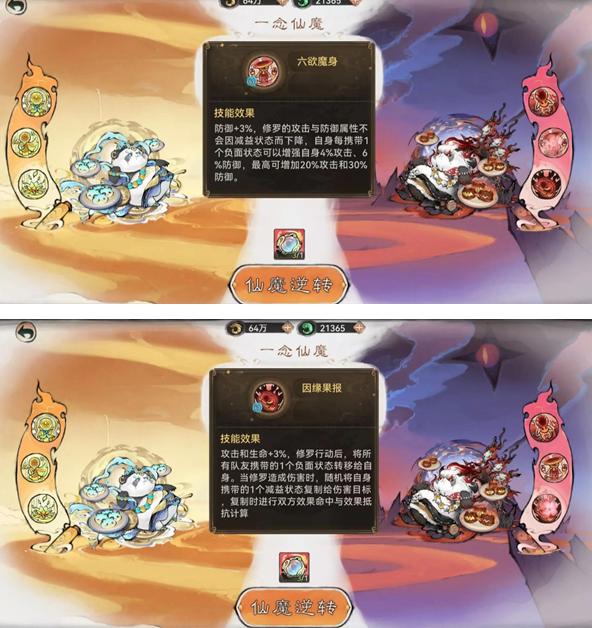 元润的基础技能几乎和普通的禅修弟子没有任何区别,在其二阶觉醒技能出来前因为五行灵根无法携带复活技能的问题导致连上一队的机会都没有。但是现在!“大人,时代不同了。”首先我们可以看到的是通过二次觉醒的元润拥有了这个游戏最大的核心之一“在动”,当每次行动结束时如果自身没有携带任何的减益状态则可额外释放“净坛长拳”。再配合另一个觉醒技能,当元润释放“净坛长拳”后使所有队友获得2回合的护盾,并获得元润当前20%防御和效果抵抗。注意这里写的是当前并不是基础,所以这也顺带可以提到和我们元润契合度及高的道兵“长夜请寒”