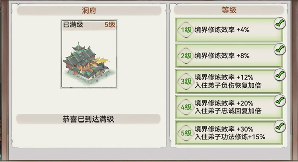 专门挑选一个洞府,将洞府等级升至满级之后,将准备使用丹药的弟子更换房间,使其入住满级洞府,可以获得境界修炼效率30%加成。