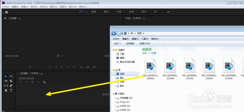 默认设置,点击确定,把视频拖入时间轴。