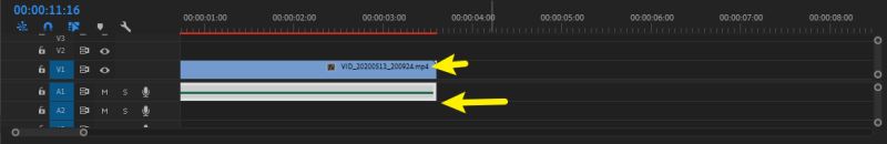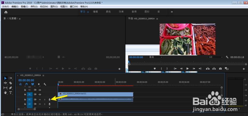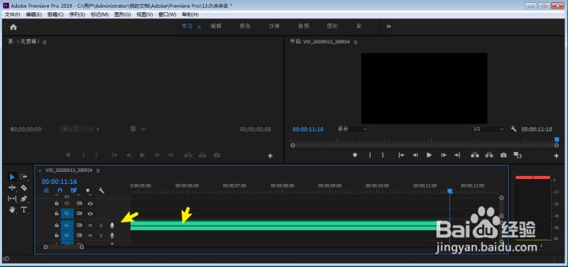 录音完成后,点击轨道上麦克风停止录音,再把绿色的录音文件对准视频轨道就可以了,就在pr完成了对视频的录音。