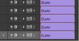3、新建项目,建一个名为“都市生活”的序列。将刚转化的01-05.WMV格式的视频导入到项目窗口中,将01-05.WMV一次添加到该序列的视频轨中,它们的位置如图3。