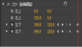 12、并设置左上和左下的关键帧。将时间标尺放在00:00:04:03处,边角固定的参数设置如图12。