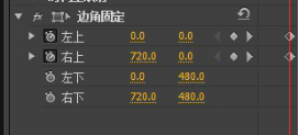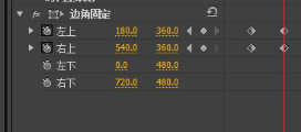 10、并设置右上和右下的关键帧。将时间标尺放在00:00:03:00处,边角固定的参数设置如图10。