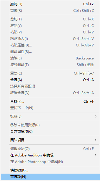3、进入编辑菜单,选择首选项。