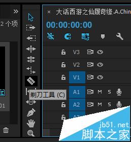 4、鼠标右键点击剃刀工具对想要剪辑的视频进行分割
