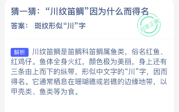 以上就是猜一猜:“川纹笛鲷”因为什么而得名?神奇海洋今天答案最新2025年11月27日分享,更多相关攻略内容,请点击关注本站手游网更新!