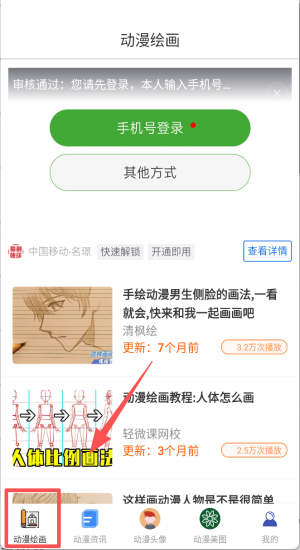 1、点击"动漫绘画"图标,系统化学习二次元创作技巧。