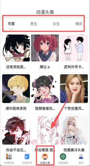 3、"动漫头像"专区提供千款个性头像,一键换装彰显个性。