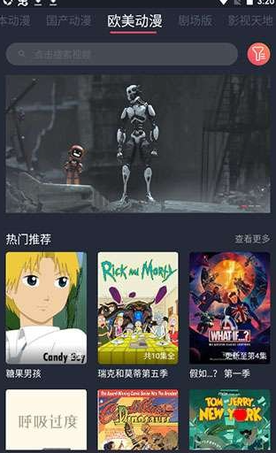2、滑动屏幕,转换动漫类型模块,如欧美动漫