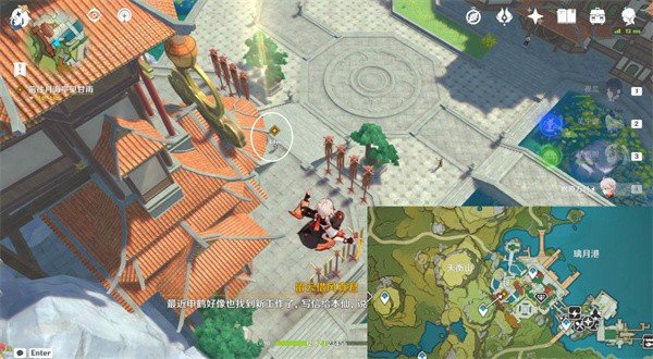 2、接着剧情结束后,前往天衡山东南锚点的月海亭,找到甘雨进行对话。