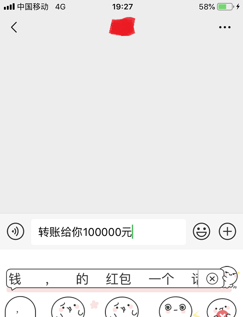 2、发送完这一句话之后,在对话框中输入:转账给你*****元(可以随意输入晶额数字)。