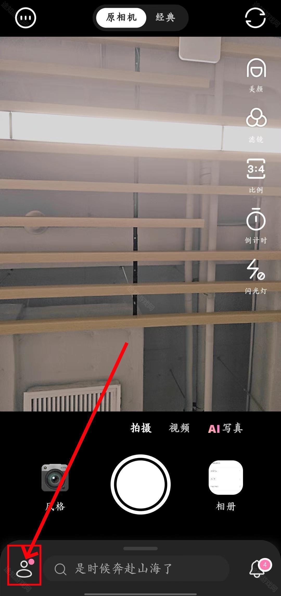 1、首先打开轻颜相机app,点击左下角小人按钮。