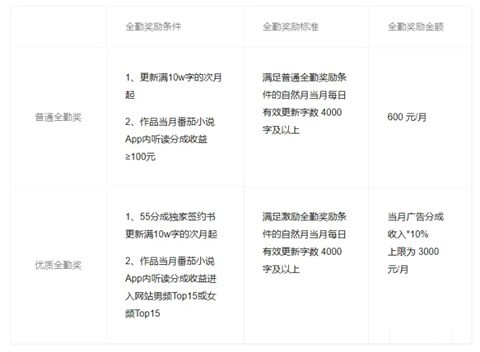 男/女频单部独家签约作品累计字数达300万/200万:1000元;累计字数达500万/350万:2000元。
