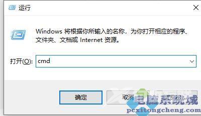 3、接着使用上面相同的方法打开运行,输入cmd回车确定。