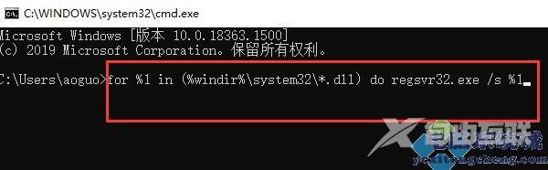 4、在其中输入for %1 in (%windir%system32*.dll) do regsvr32.exe /s %1回车确定,用来重新注册所有的dll文件。
