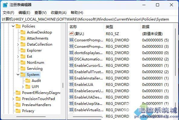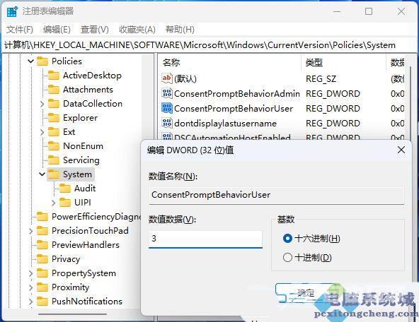 5、双击打开名为值,将其值改为:自动拒绝提升请求在安全桌面上提示凭据提示凭据