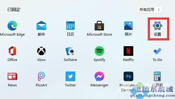 2、在开始菜单中找到设置或settings,一般是右上角的齿轮状按钮,